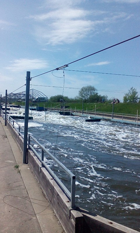 Tuż przed Tyńcem oglądaliśmy przelew przez stopień wodny, ukształtowany na odcinek rwącej, górskiej rzeki na potrzeby treningu kajakarzy i rafterów. Można tam sobie wynająć kajak lub ponton (na 5-6 osób) i spróbować własnych sił i zapotrzebowania na adrenalinę. Widzieliśmy kilka załóg takich amatorów, mniej lub bardziej skutecznie walczących z prądem i zakosami.