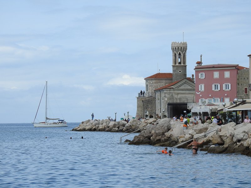 To w ogóle jest niebywała sprawa: Słowenia wynegocjowała sobie po II wojnie światowej dostęp do morza, ale symboliczny – cała linia brzegowa tego kraju ma coś 44 km, natomiast jak zmierzyć bezpośrednią odległość między punktem, gdzie do brzegu dochodzi granica z Chorwacją i analogicznym punktem na granicy z Włochami, wychodzi raptem niecałe 17 km. Dlatego dla Słoweńców wycieczka nad morze jest dobrem rzadkim i pożądanym.
